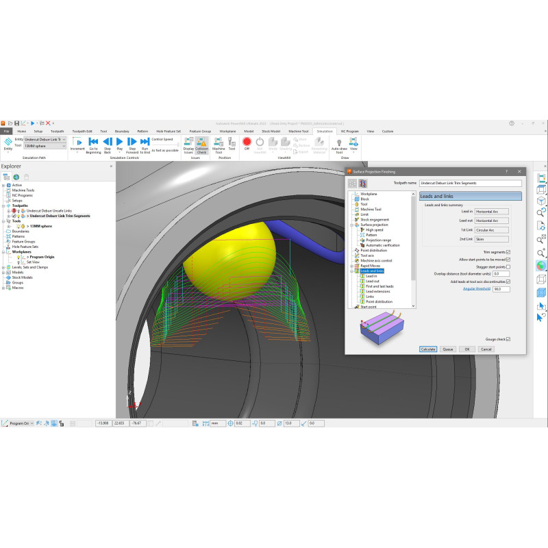 Використовуючи симуляцію PowerMILL, ви можете завантажувати верстати повністю, щоб перевіряти траєкторії та візуалізувати дії верстата та інструменту з різних точок зору.